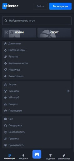 Браузерная версия казино Селектор на Айфон содержит стандартный набор опций. Игрок может: